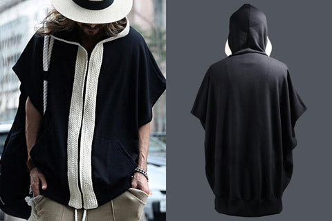 Men’s Loose Color Block Hooded Short Sleeve Sweatshirt Jacket 83697432Y