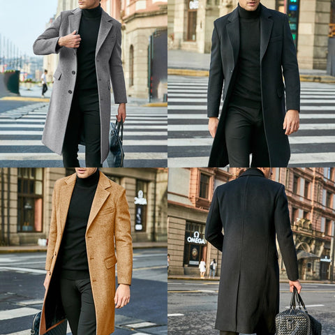 Men’s Notch Lapel Plain Slim Fit Mid-Length Coat 75965974Z